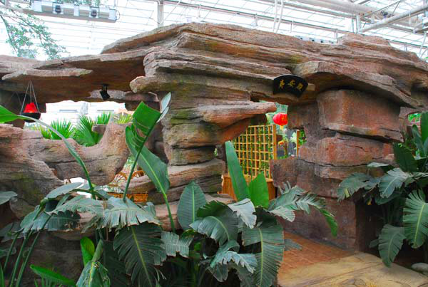 綠色生態(tài)餐廳完全按照標(biāo)準(zhǔn)溫室的結(jié)構(gòu)建造,多采用文洛式,覆蓋材料多為PC板或者玻璃,結(jié)構(gòu)保溫性能好,整齊規(guī)范,室內(nèi)各個(gè)空間溫度均勻,有利于景觀植物的生長(zhǎng),鑒于餐飲布局的需要,在文洛溫室結(jié)構(gòu)的基礎(chǔ)上,可進(jìn)行局部調(diào)整。該溫室建造成本相對(duì)較低,溫室升降溫能耗低,節(jié)約后期運(yùn)行費(fèi)用。