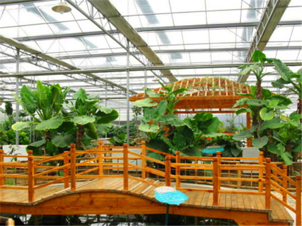 綠色生態(tài)餐廳完全按照標準溫室的結(jié)構(gòu)建造,多采用文洛式,覆蓋材料多為PC板或者玻璃,結(jié)構(gòu)保溫性能好,整齊規(guī)范,室內(nèi)各個空間溫度均勻,有利于景觀植物的生長,鑒于餐飲布局的需要,在文洛溫室結(jié)構(gòu)的基礎(chǔ)上,可進行局部調(diào)整。該溫室建造成本相對較低,溫室升降溫能耗低,節(jié)約后期運行費用。